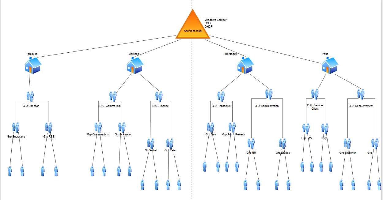 Dans ce projet j’ai du mettre en place et configurer un Windows serveur avec plusieurs service comme l’AD, DHCP, DNS, et bien plus encore.