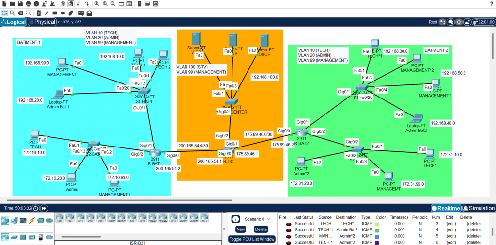 J’ai créer grâce à l’outil de simulation réseau CISCO PACQUET TRACER. Avec Draw.io, j’ai conçu une maquet que j’ai ensuite représenter tout en configurant les pc, switch, serveur, et routeur. Ainsi , j’ai acquis des solides connaissances de base  en  réseau.