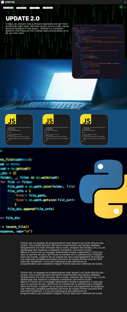 L’ors d’un projet d’équipe il m’a été demander à moi et à mon collègue de classe de réaliser une interface visuel d’une application d’enseignement des langues de codage JavaScript, et Python.